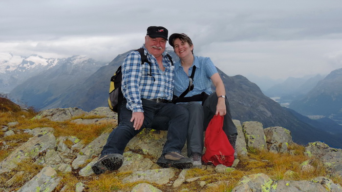 Bei der Segantini-Hütte mit Blick auf den Maloja-Pass (im Hintergrund rechts)